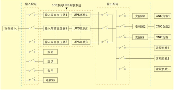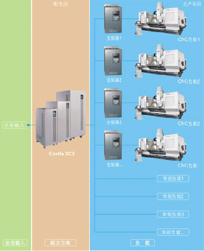 城(chéng)堡3C3系列UPS最大(dà)可(kě)并聯8台,640kVA大(dà)系統容量充滿滿足大(dà)部分(fēn)工業應用(yòng)環境。