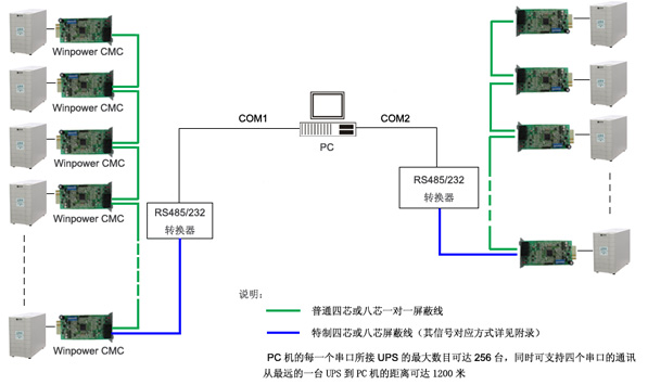 台積電的(de)生産工廠分(fēn)布在大(dà)陸多(duō)個(gè)城(chéng)市,采用(yòng)了(le)500多(duō)套UPS。而實現UPS集中管理(lǐ)成爲保障負載安全運行的(de)重要因素之一,山特提供的(de)UPS品種多(duō)樣,共分(fēn)爲5大(dà)系列20多(duō)種規格,這(zhè)對(duì)UPS的(de)集中監控和(hé)遠(yuǎn)程管理(lǐ)提出了(le)更高(gāo)的(de)要求,山特針對(duì)這(zhè)一難題提供一整套完善、可(kě)靠、有效的(de)遠(yuǎn)程監控管理(lǐ)方案,利用(yòng)山特UPS的(de)RS232、RS485接口及 AS400、Winpower、Webpower接口卡,配合豐富多(duō)樣的(de)管理(lǐ)軟件,可(kě)以輕松實現本地單台、本地多(duō)台、異地單台、異地多(duō)台、集群集中管理(lǐ),如圖2所示。使得(de)各地UPS的(de)運行狀況更容易掌控,如圖3、圖4所示。