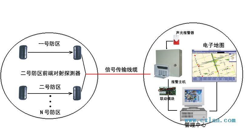 通(tōng)常,在小區(qū)的(de)圍牆四周設置紅外多(duō)束對(duì)射探測器,一旦有非法入侵者闖入就會觸發,并立即發出報警信号到周界控制器,通(tōng)過網絡傳輸線發送至管理(lǐ)中心,并在小區(qū)中心電子地圖上顯示報警點位置,以利于保安人(rén)員(yuán)及時(shí)準确地處警,同時(shí)聯動現場(chǎng)的(de)聲光(guāng)報警器(白天使用(yòng))或強光(guāng)燈(夜間使用(yòng)) ,及時(shí)威懾和(hé)阻吓不法之徒,提醒有關人(rén)員(yuán)注意,做(zuò)到群防群治,拒敵于小區(qū)之外,真正起到防範的(de)作用(yòng)。